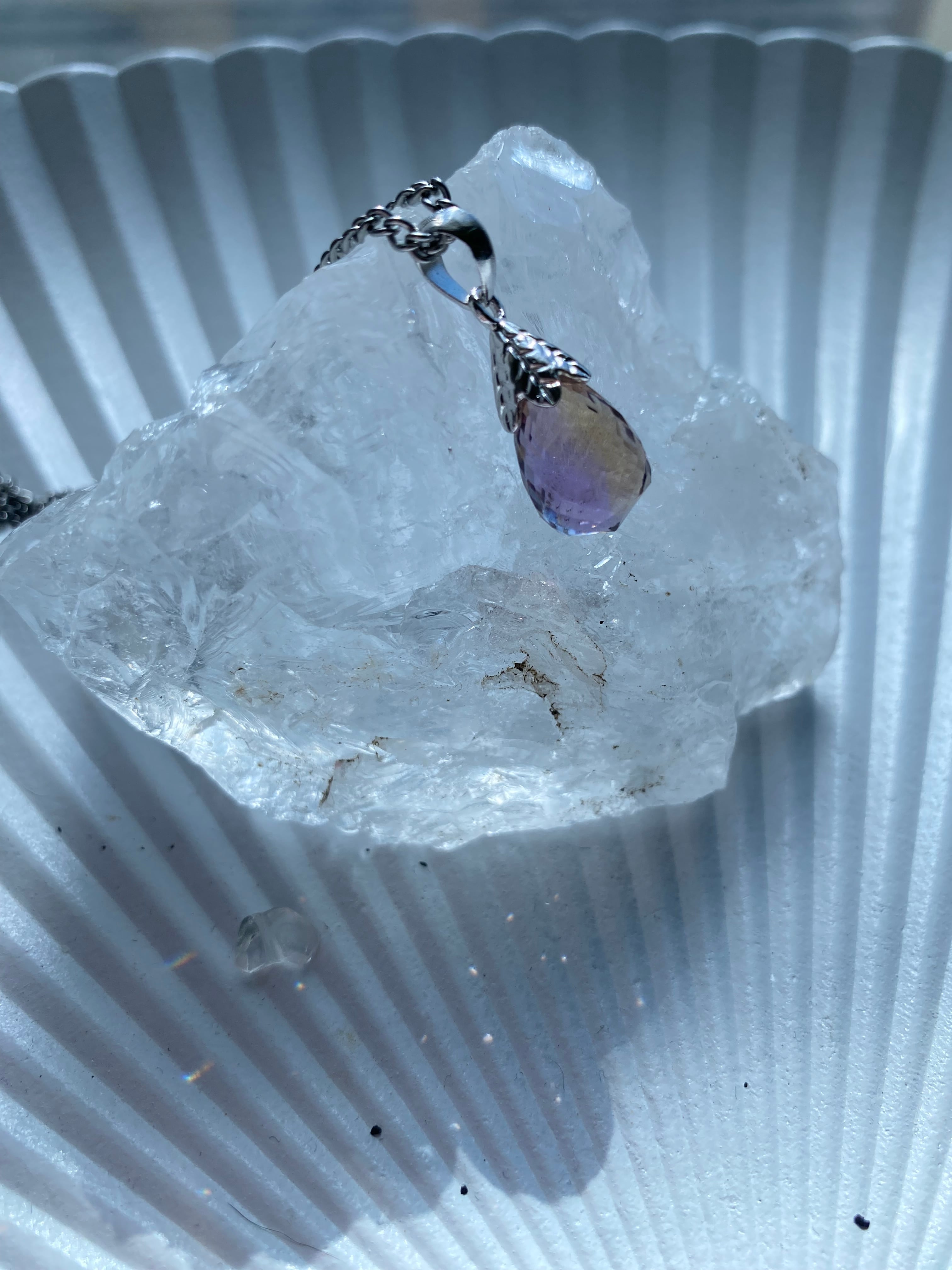 一つの結晶の中にアメジストとシトリンが生成することでバイカラーになるアメトリン✨