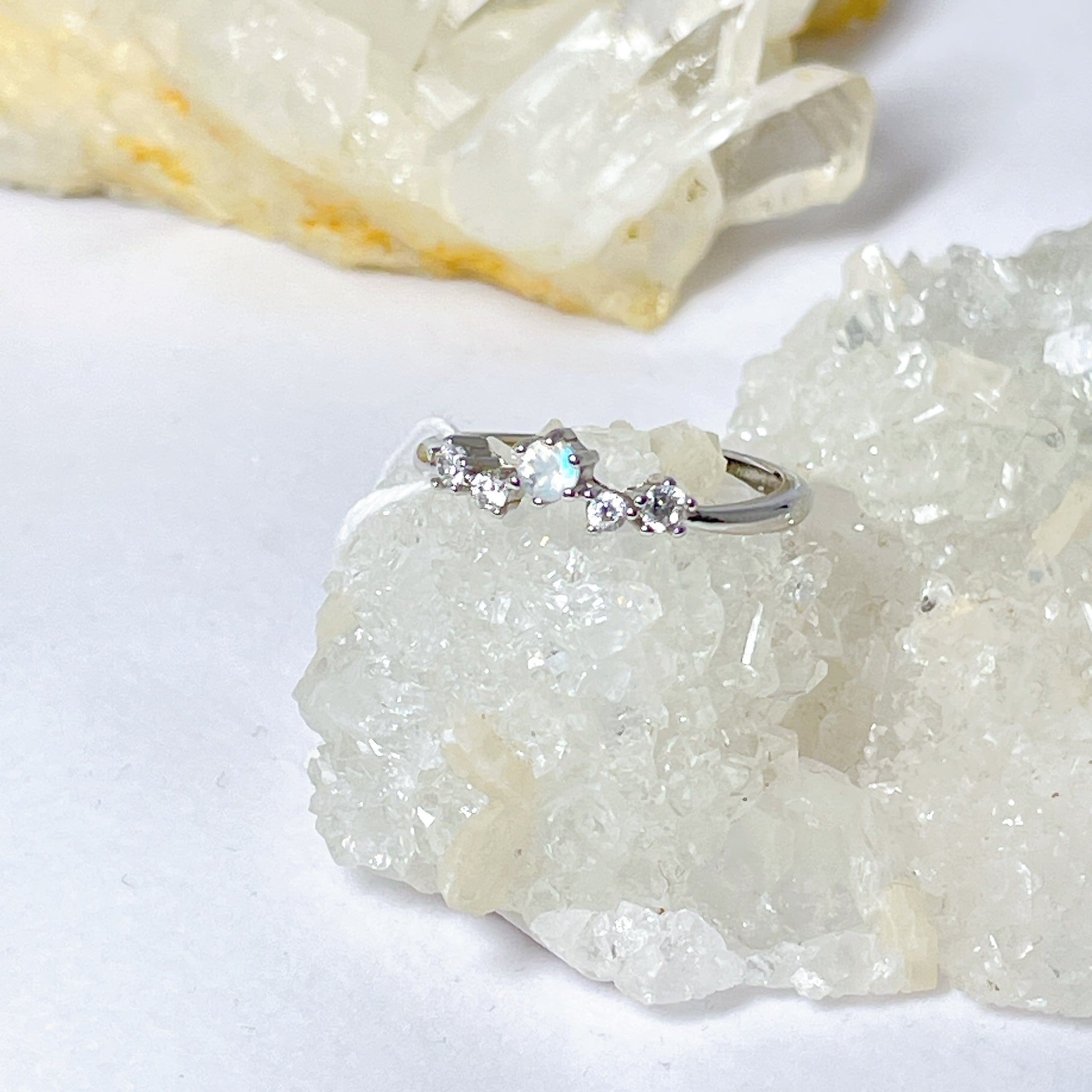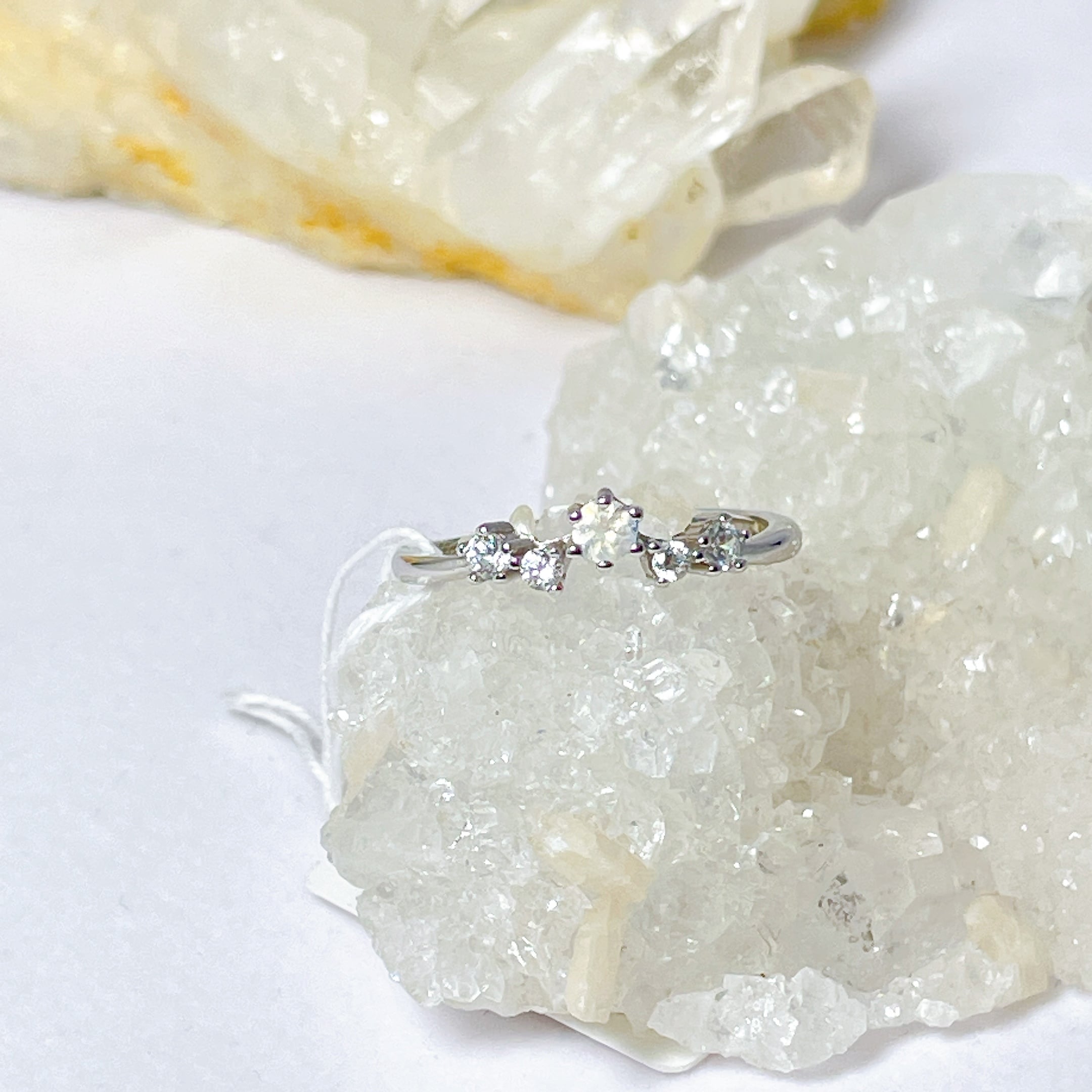 ホワイトラブラドライトは、通常のラブラドライトよりも女性的で優しいエネルギーをもつとされ、心を落ち着かせてくれる効果もあります。