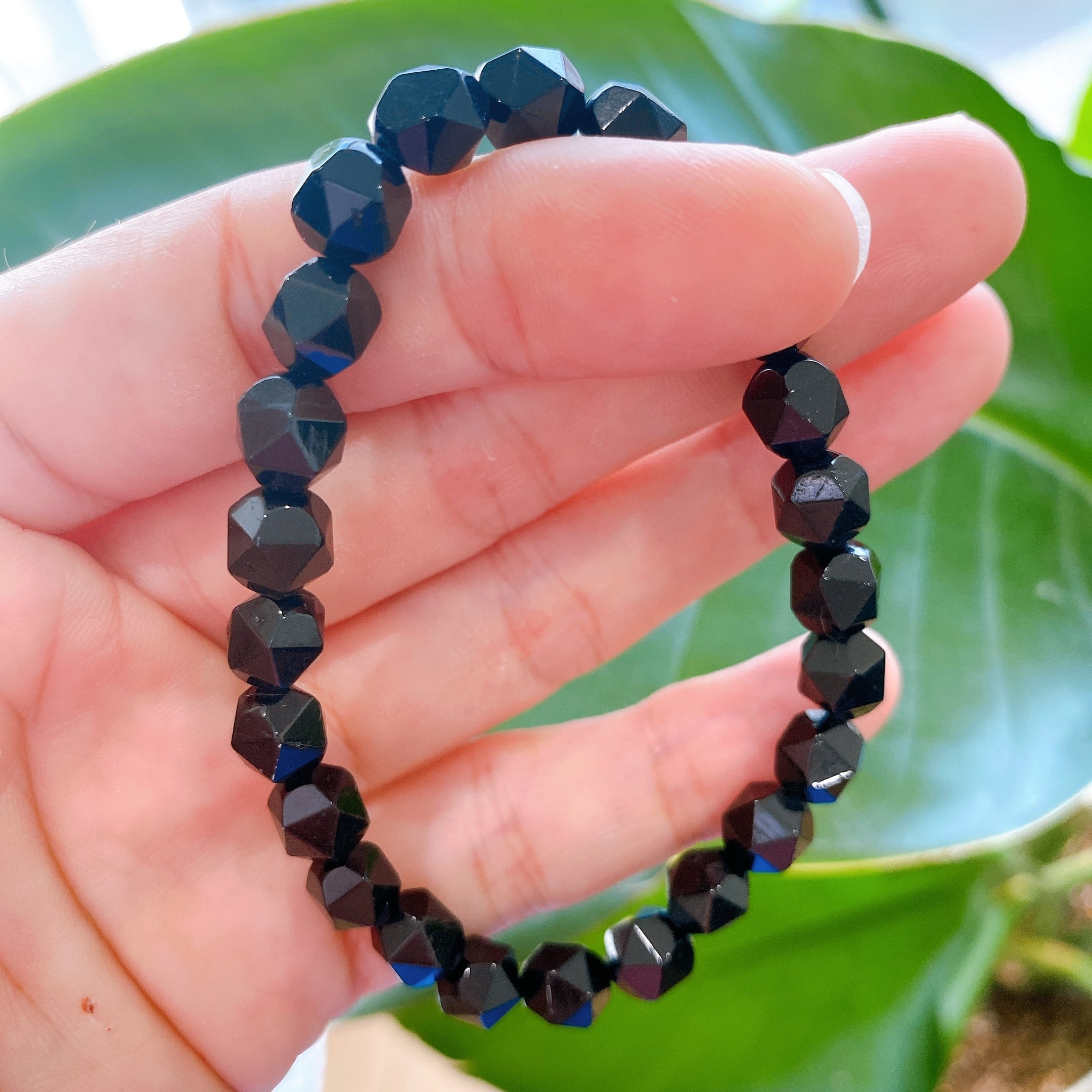 ブラックトルマリンの石言葉は、邪気払い·保護·安定·グラウンディングなど、非常に力強く守りのエネルギーを持つ意味が込められています。「ネガティブなエネルギーをはね返し、守る力(魔除け)」「地に足をつける、自分の中心に戻る」「見えない不安や悪影響から身を守る」というように、ブラックトルマリンは、守護と安定の象徴とされています。人の感情や気に敏感で疲れやすい、ネガティブな気持ちをリセットしたい、自分軸を強く持ちたいときは、心を落ち着け、ご自身の軸を取り戻す力強い味方です。